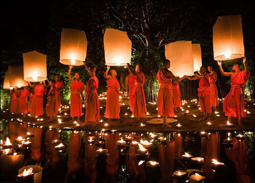 “奧瓦薩”時(shí)間在傣歷1 2月1 5日(陽(yáng)歷9月中旬)。這一天,表示從“關(guān)門(mén)節(jié)”以來(lái)的安居齋戒期已滿(mǎn),男女老幼皆盛裝去佛寺里拜佛,以食物、鮮花、蠟條、錢(qián)幣獻(xiàn)佛,向佛祖懺悔,祈求佛祖賜福降平安,同時(shí)舉行盛大的娛樂(lè)集會(huì),“章哈”演唱,放高升、晚上放焰火、放孔明燈等,慶祝開(kāi)門(mén)節(jié)。此時(shí),雨季已過(guò),稻谷收割完畢,故也稱(chēng)為慶祝豐收的節(jié)日。