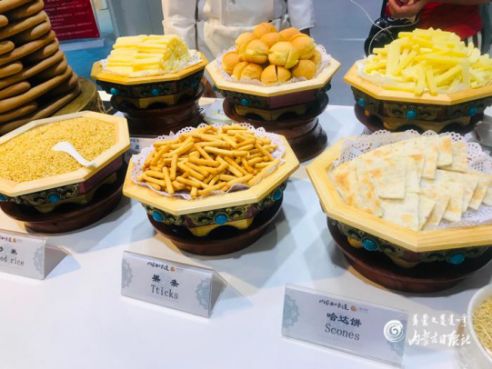 展區(qū)匯集了內(nèi)蒙古12盟市各地區(qū)的民間特色美食。包括呼市燒麥、武川莜面、和林燉羊肉、清水河黃米炸糕、托縣燉魚、豐鎮(zhèn)月餅、卓資熏雞、水煮羊背子、老茶湯、蒙古奶茶、酸馬奶、手把肉、烏海葡萄酒、香熏羊小腿、布里亞特包子、俄羅斯列巴、赤峰對夾等等近百道美食。