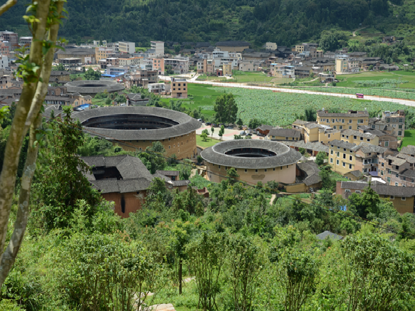 福建土樓所在的閩西南山區(qū),正是福佬與客家民系的交匯處,地勢險(xiǎn)峻,人煙稀少,一度野獸出沒,盜匪四起。聚族而居既是根深蒂固的中原儒家傳統(tǒng)觀念要求,更是聚集力量、共御外敵的現(xiàn)實(shí)需要使然。福建土樓依山就勢,布局合理,吸收了中國傳統(tǒng)建筑規(guī)劃的“風(fēng)水”理念,適應(yīng)聚族而居的生活和防御的要求,巧妙地利用了山間狹小的平地和當(dāng)?shù)氐纳痢⒛静?、鵝卵石等建筑材料,是一種自成體系,具有節(jié)約、堅(jiān)固、防御性強(qiáng)特點(diǎn),又極富美感的生土高層建筑類型。這些獨(dú)一無二的山區(qū)民居建筑,將源遠(yuǎn)流長的生土夯筑技術(shù)推向極致。