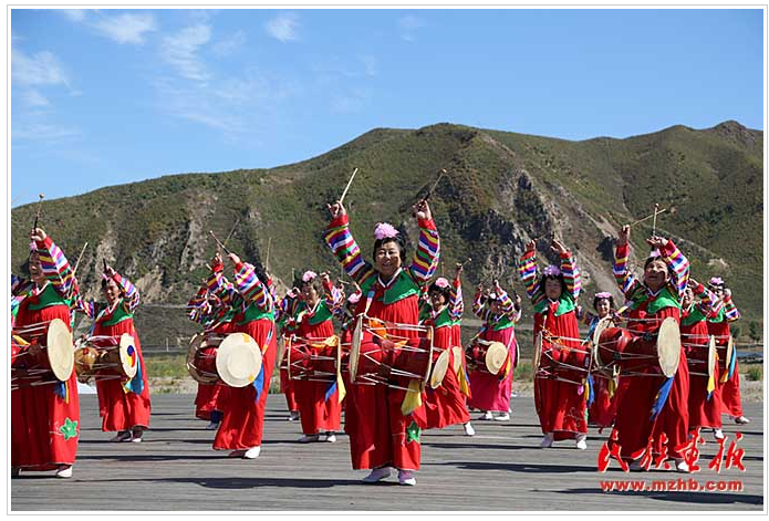 圖們市,隸屬于吉林省延邊朝鮮族自治州,位于吉林省東部,長白山脈東麓。圖們市的圖們江廣場(chǎng)環(huán)境幽雅,綠樹成蔭,廣場(chǎng)內(nèi)鼓聲隆隆、彩裙飄飄,近百位身著朝鮮族服裝的老人們斜挎長鼓,翩翩起舞。鼓聲的鏗鏘映襯老人綻放的笑臉,一種“延邊特色”的幸福感便撲面而來。與朝鮮南陽市隔江相望的圖們江畔第一城圖們市以民族傳統(tǒng)文化為媒,奏響了文化興邊新樂章。