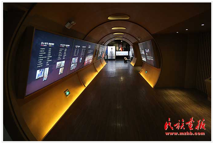 一樓展廳主題為“舞樂風(fēng)情”,展廳墻體為一道曲線,別致新穎,據(jù)了解,展示舞蹈的曲線墻設(shè)計(jì)靈感來自朝鮮族象帽舞?!跋竺蔽琛笔寝r(nóng)樂舞拓展項(xiàng)目,國家級(jí)非物質(zhì)文化遺產(chǎn),是朝鮮族“農(nóng)樂舞”中表演難度和藝術(shù)價(jià)值最高的表演形式。參觀者走進(jìn)互動(dòng)體驗(yàn)區(qū),可以戴上象帽體驗(yàn)飄帶飛舞的熱烈奔放感。“象帽舞”的飄帶不斷向上盤旋,代表著朝鮮民族對(duì)未來生活的祝福。