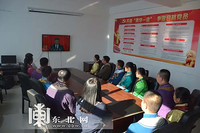 10月18日,同江市八岔赫哲族鄉(xiāng)干部群眾激動地收看黨的十九大開幕會