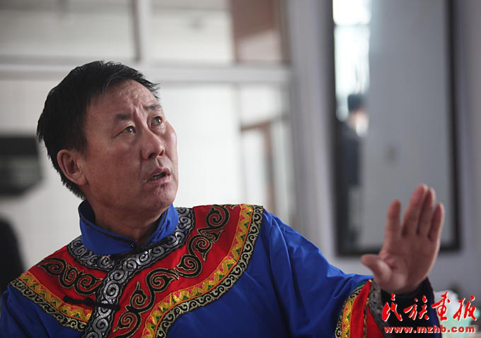 赫哲族獨特說唱藝術伊瑪堪的傳人吳寶臣(袁東平 攝影)