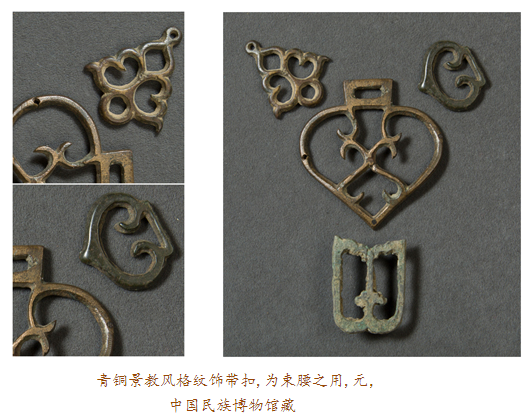 眼前此件在內(nèi)蒙古達(dá)茂旗出土的元代鎏金青銅十字架,四面排列有浮雕金剛杵紋,其正面每個(gè)金剛杵圖案上均有鎏金裝飾,十字架上部穿孔則可用于懸掛。金剛杵是藏傳佛教里的修行法器,象征力量與智慧;而十字架則是基督教文化的標(biāo)志,如此混搭,歷史便要傳遞出種種:在信仰藏傳佛教的蒙古高原,金剛杵,象征無(wú)畏圓滿(mǎn),十字架,則代表救贖重生,東西方文化的結(jié)合亦呈現(xiàn)某種文明可能達(dá)到的無(wú)可比擬之高度。