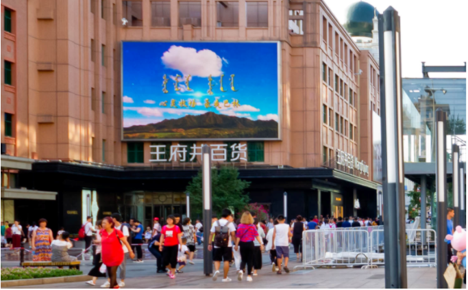 在北京王府井大街播放的30秒“心靈牧場 豪爽巴林”旅游形象宣傳視頻,每天滾動播放120次(巴林右旗人民政府網(wǎng))