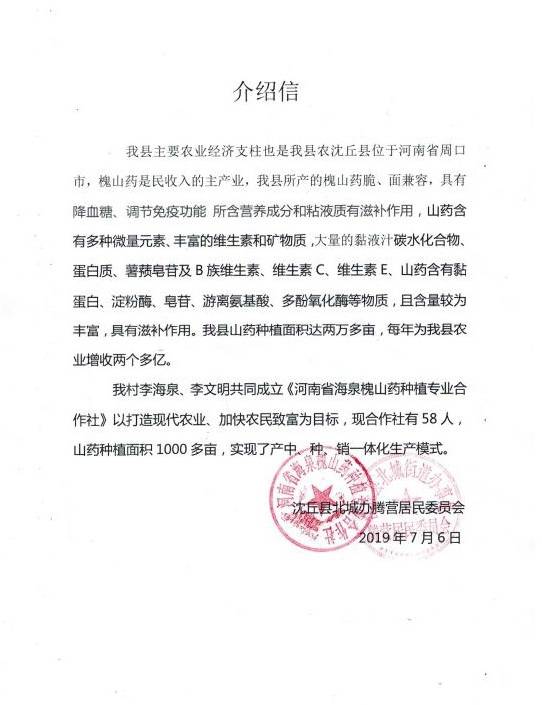因?yàn)椤盎比龑殹钡男б婷黠@,合作社于2013年成立之初吸納社員102戶,種植面積達(dá)1000多畝。2014年5月,“槐三寶”商標(biāo)順利通過國家農(nóng)業(yè)部無公害農(nóng)產(chǎn)品認(rèn)證和無公害農(nóng)產(chǎn)品標(biāo)識使用權(quán),基地獲河南省農(nóng)業(yè)廳無公害農(nóng)產(chǎn)品產(chǎn)地認(rèn)定。發(fā)展到現(xiàn)目前,2019年,其種植面積已經(jīng)超過4000畝,產(chǎn)量在5500噸以上。據(jù)合作社監(jiān)事李文明講:“今年沒澇,現(xiàn)在七月,山藥快成熟了,可以預(yù)見,是個(gè)豐收年?!薄?/p>