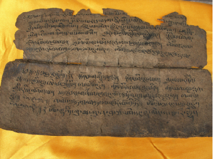 一般認(rèn)為普米族沒有本民族文字,但歷史上普米族曾使用過簡(jiǎn)單的圖畫文字,這是一種萌芽的原始刻畫文字,見于房屋壁畫、神龕、法器、房梁等地?,F(xiàn)學(xué)界說的“韓規(guī)文”是以藏文字母為基礎(chǔ),用以記錄普米語(yǔ)的文字符號(hào)。韓規(guī)文主要用于抄寫宗教祭祀經(jīng)文,認(rèn)知度不高,一般只有普米族的巫師“韓規(guī)”才能掌握使用(圖為韓規(guī)文經(jīng)書殘片,蒙哥提圖)。普米族現(xiàn)今有一套拼音文字,該套拼音文字以寧蒗彝族自治縣新營(yíng)盤鄉(xiāng)牛窩子村的普米語(yǔ)為基礎(chǔ)音,在寧蒗普米傳統(tǒng)文化保護(hù)協(xié)會(huì)及香港大學(xué)丁思志教授的努力下,經(jīng)修訂的拼音文字最終面世,并且有了普米語(yǔ)教材。普米族拼音文字設(shè)計(jì)的構(gòu)想最早是在1995年由香港大學(xué)大學(xué)丁思志教授提出,同年,普米語(yǔ)聲母表首稿完成。該方案歷經(jīng)修改,最終的方案共收錄42個(gè)聲母,能夠滿足各地普米方言的使用需求。近年,丁思志教授又創(chuàng)制了一套有別于拼音文字的新創(chuàng)文字。新創(chuàng)文字是一種表意文字,該套文字以牛窩子普米語(yǔ)為基礎(chǔ)音,以漢字表意,輔之以自創(chuàng)的虛詞而成,從一定程度上超越了普米語(yǔ)言空間限制,解決了不同普米方言區(qū)因?yàn)榭谝舨町惗纬傻慕涣髡系K。