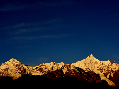 圖為梅里雪山卡瓦格博峰的金黃“震撼”(引自德慶州政府網(wǎng))