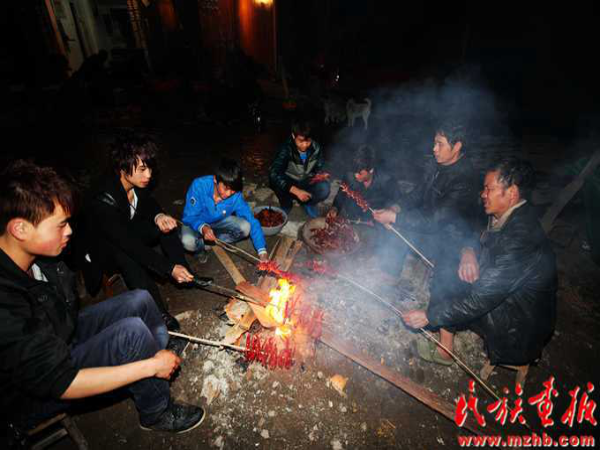 這次結(jié)婚的共有15對新人(多時有二三十對),均來自本寨的青年男女。婚禮從大年二十六開始,共進行三天,在三天的婚禮中新郎新娘家均有婚宴,尤以第一天中午的規(guī)模最大也最為隆重。
