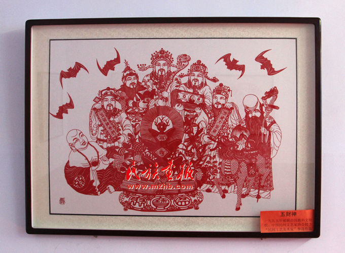 豐寧剪紙中源于中國神話的《五財(cái)神》,寄寓著對(duì)大富大貴生活的憧憬