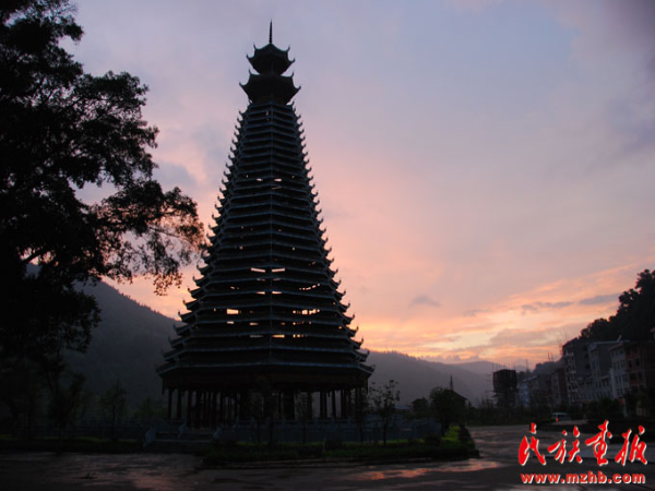 一首侗族詩歌《遠去的鼓樓》這樣寫道:“如今我面對一張泛黃的照片/風雨之中似乎還聽到了鏗鏘之聲/遠古的鼓角征戰(zhàn)廝殺/如海市蜃樓般的幻影/在眼前縹緲而來又縹緲而去/鼓樓毀了又建建了又毀/一個歷盡滄桑的民族呵/木雕畫梁上的記錄/也是那樣千瘡百孔/正因有千瘡百孔作點綴/古老的民族古老的鼓樓/更加放射出不屈的光芒/更加盛開出藝術(shù)的花朵。”