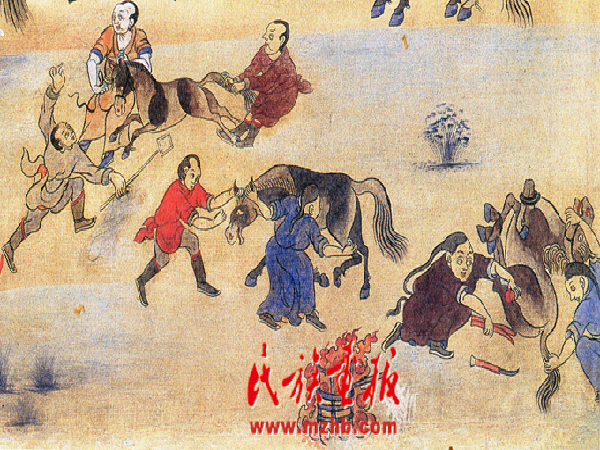 放牧遠(yuǎn)行,馬是重要的交通工具;嫁娶新人,要以駿馬為坐騎;宗教神話中,馬是神的代言者;草原盛會(huì),賽馬是必不可少的內(nèi)容;在蒙古族民間傳說和歌謠中,對(duì)馬的贊頌更是比比皆是。馬是蒙古人日常生活最親密的伙伴,蒙古人有特別濃厚的戀馬情結(jié),這就是我們說的“馬文化”現(xiàn)象。蒙古族的馬文化是在長(zhǎng)期生產(chǎn)生活中逐漸形成、演化、發(fā)展而來的。曾是軍事、交通運(yùn)輸、農(nóng)業(yè)生產(chǎn)等活動(dòng)的主要?jiǎng)恿Α?/p>