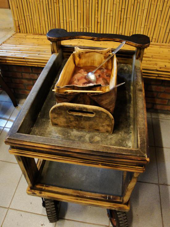 阿美人有一種美味的麥飯石火鍋,將燒得滾燙的麥飯石投入盛有魚、肉、菜等的竹筒或檳榔鞘殼中,利用石塊的溫度將食物燙熟后食用,味道鮮美且極富營(yíng)養(yǎng),且阿美人會(huì)煎炒、油炸。