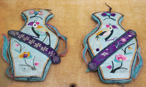 展覽展出的民國時(shí)期的繡花布瓶袋。 本報(bào)記者牛銳攝