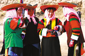 隨著時(shí)代的更替,土族女性的服飾發(fā)生了很大變化,有的傳統(tǒng)服飾已消失,有的服飾經(jīng)過推陳出新,重放光彩。如舊時(shí)的繡花高領(lǐng),如今變成直翻兩用領(lǐng);蓋在“扭達(dá)”上的長(zhǎng)頭巾——“扭達(dá)爾秀巾”,變成了今日土族女性使用的短頭巾?,F(xiàn)今,廣大土族女性,不僅喜穿本民族服飾,而且還愛著時(shí)尚服飾,她們或使土族服飾時(shí)裝化,或使時(shí)裝土族服飾化,豐富了土族的服飾文化。