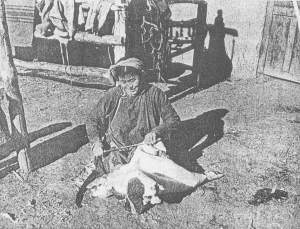 鄂倫春族婦女在揉皮子