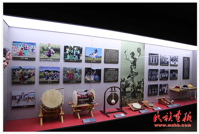 介紹農(nóng)樂舞的展示區(qū)。中國朝鮮族農(nóng)樂舞,是世界級非物質文化遺產(chǎn)