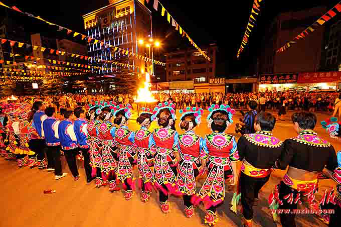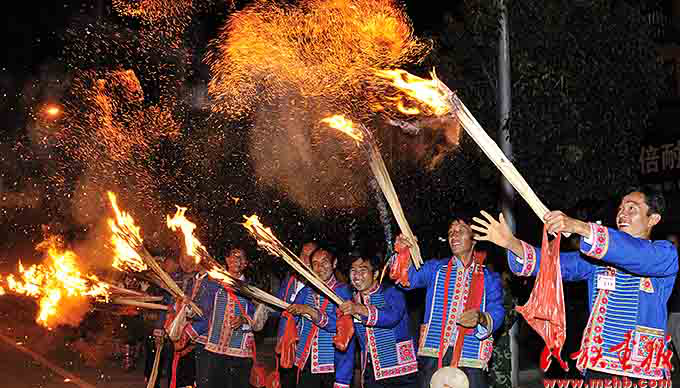 火把節(jié)是彝族傳統(tǒng)節(jié)日中最普遍、最隆重、最富有民族特色的節(jié)日,一般在農(nóng)歷六月二十四至二十六舉行,楚雄彝族火把節(jié)于2006年5月經(jīng)國務(wù)院批準為第一批國家級非物質(zhì)文化遺產(chǎn)保護項目。節(jié)日內(nèi)容集民俗活動、經(jīng)貿(mào)活動、文體活動和社交活動于一體,像磁石一樣吸引著各族群眾,許多人就是通過參加火把節(jié)認識了彝族,知道了楚雄彝族自治州的。節(jié)日期間,各族人民載歌載舞,?;鸢?、放焰火,火把節(jié)成了弘揚彝族文化、促進對外交流、開展經(jīng)貿(mào)活動和各族人民大團結(jié)的盛會。