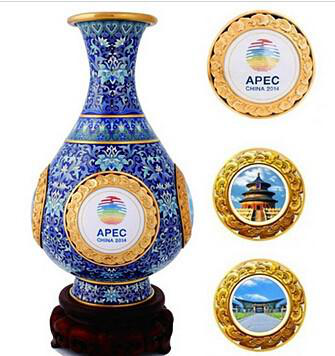 2014年APEC會(huì)議中,作為國(guó)禮饋贈(zèng)給各經(jīng)濟(jì)體領(lǐng)導(dǎo)人的三件禮品中就有一件采用景泰藍(lán)工藝,以藏于北京故宮博物院的霽紅釉玉壺春瓶為原型,由中國(guó)七位國(guó)家級(jí)、北京市工藝美術(shù)大師聯(lián)手創(chuàng)作的《四海升平》景泰藍(lán)賞瓶。