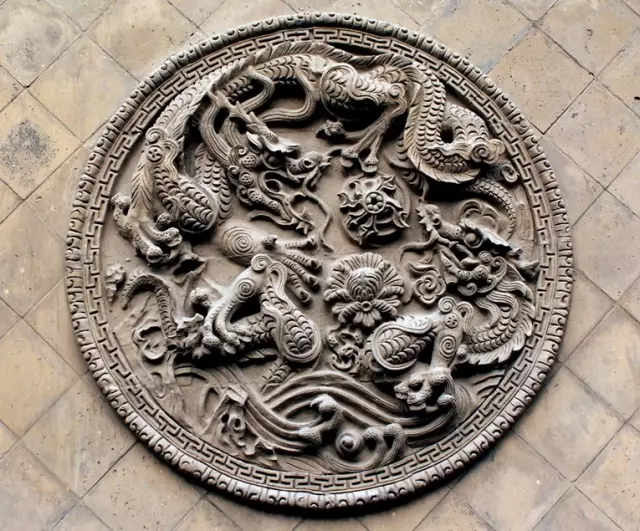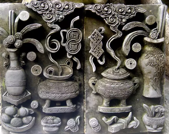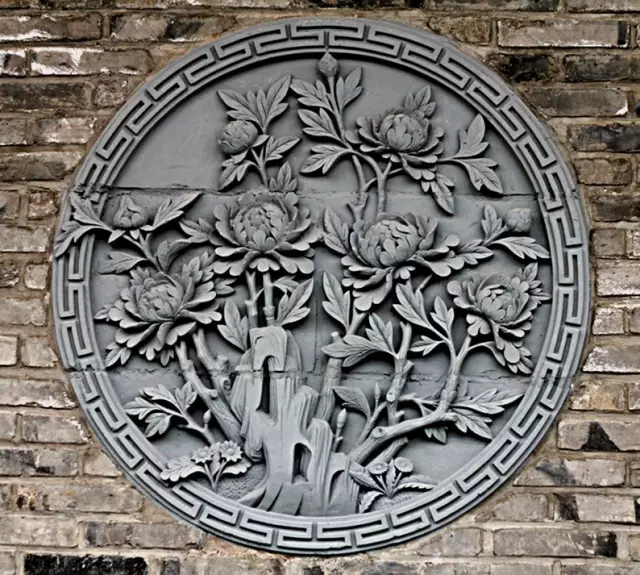 清代,北京紫禁城宮廷內墻面夾柱的通氣孔也都使用磚雕,鏤雕花鳥圖案,牢固磚雕 而美觀,且利于空氣流通。