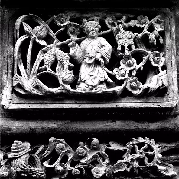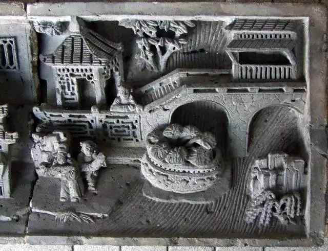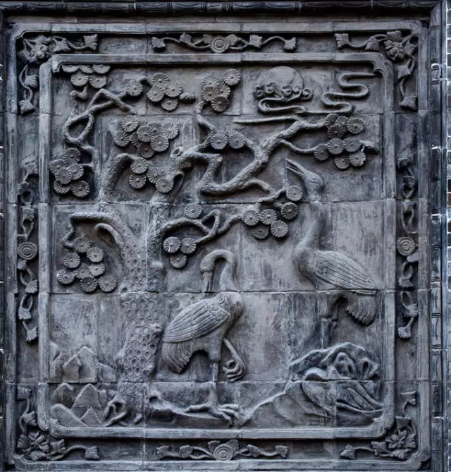 磚雕指在青磚上雕出山水、花卉、人物等圖案,是古建筑雕刻中很重要的一種藝術形式。