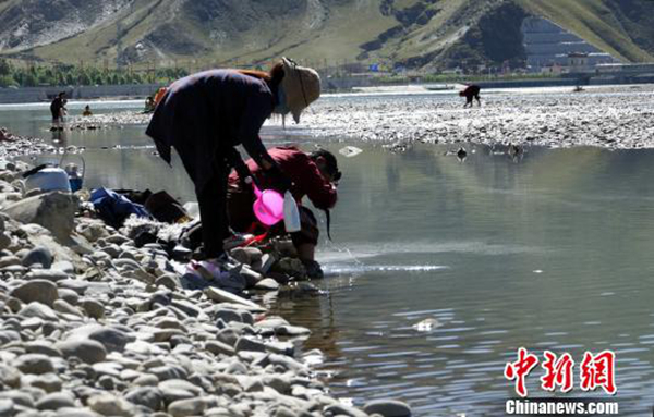 雖是初秋,但拉薩的陽(yáng)光依然炙烈,拉薩河河水微暖。按照藏歷氣象學(xué)的說(shuō)法,此時(shí)水質(zhì)最好——甘、涼、軟、輕、清、不臭、不損喉、不傷腹。