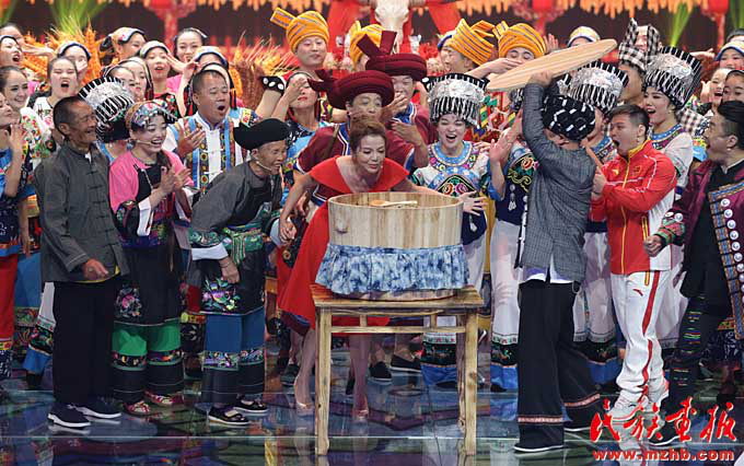 脫貧致富的十八洞村民參加中央電視臺的《魅力中國城》比賽,向全國人民展示十八洞村的魅力,展示苗族群眾對美好生活的向往(湘西自治州州委宣傳部 供圖)