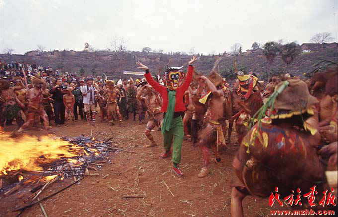 2000年后,楊麗萍將更多的精力投入到云南民族文化的挖掘整理中。圖為她在彝族祭火現(xiàn)場(chǎng)參與表演(民族畫(huà)報(bào)資料)