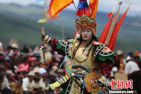 圖為掛牌儀式現場上演藏戲《格薩爾王傳》 鐘欣 攝