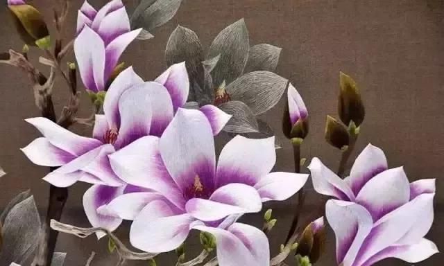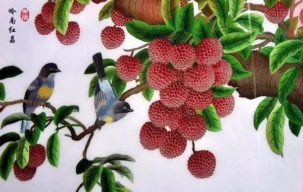 這些傳統(tǒng)技法既長于刺繡花鳥蟲魚等細膩的工筆,又善于表現(xiàn)氣勢磅礴的山水圖景,刻劃人物形象也逼真?zhèn)魃瘛?/p>