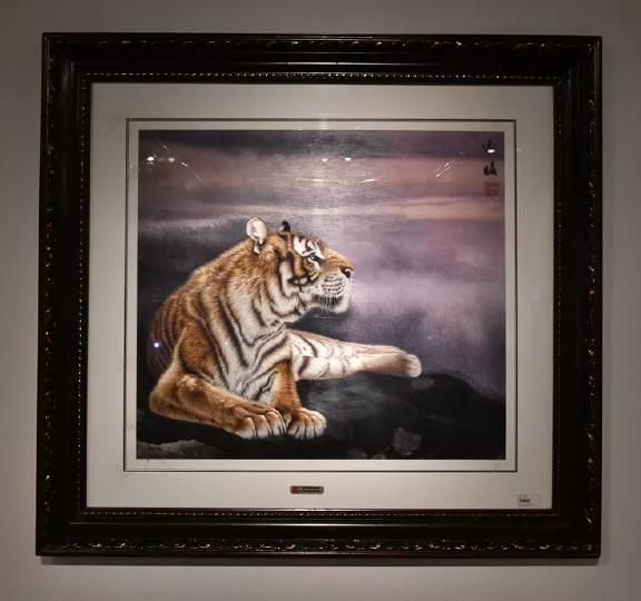 本幅繡品首次成功地將人物肖像圖方式引入傳統(tǒng)走獸刺繡之中。作者用細膩的針法細致精準地繡出了老虎根根可辨的絨毛和少女光滑細膩的皮膚,形成極大的反差,極具視覺沖擊力。
