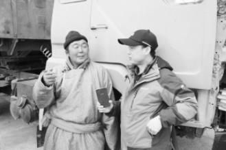 2017年,王玉龍(右)在內(nèi)蒙古二連浩特采訪蒙古國卡車司機。 受訪者供圖