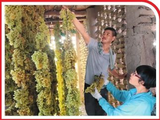 游客在吐魯番市高昌區(qū)葡萄鎮(zhèn)體驗(yàn)采摘晾制葡萄