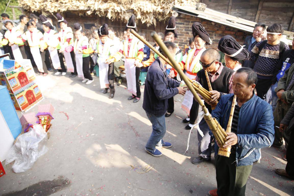 高坡苗族鄉(xiāng)批林村喪葬儀式上的蘆笙舞 姜基海攝