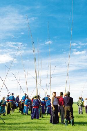 有些人和事是蒙古族所獨(dú)有的:迄今仍豎寫(xiě)的文字,綜合了實(shí)用與建筑學(xué)美學(xué)原理的蒙古包,集合力量與技巧的套馬,歡樂(lè)盛會(huì)那達(dá)慕,蘊(yùn)含生存哲學(xué)的搏克,與國(guó)際象棋同理的蒙古象棋,好聽(tīng)的長(zhǎng)調(diào)與馬頭琴,以萬(wàn)物崇敬為核心理念的宗教文化……事實(shí)上,能夠讓草原持久保持綠色的內(nèi)因正是游牧文明的核心價(jià)值:和諧、包容、適度索取,樂(lè)觀、智慧、堅(jiān)韌向前。這些內(nèi)涵可以從蒙古族的物質(zhì)和精神生活包括那達(dá)慕中得到答案。