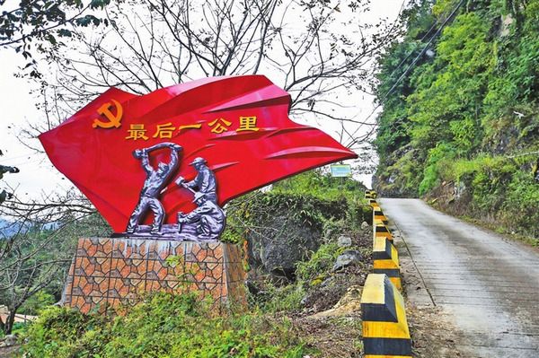 西灑鎮(zhèn)巖頭村,道路旁高聳的峭壁上鐫刻著兩個鮮紅大字——“實干”。“歷時12年,我們在懸崖峭壁上硬生生劈出了4米寬進村路!”村民小組長李華明說,現(xiàn)在正與村民謀劃開辦“最后一公里”農(nóng)家飯莊,村里的“最后一公里”展覽館也正在建設。