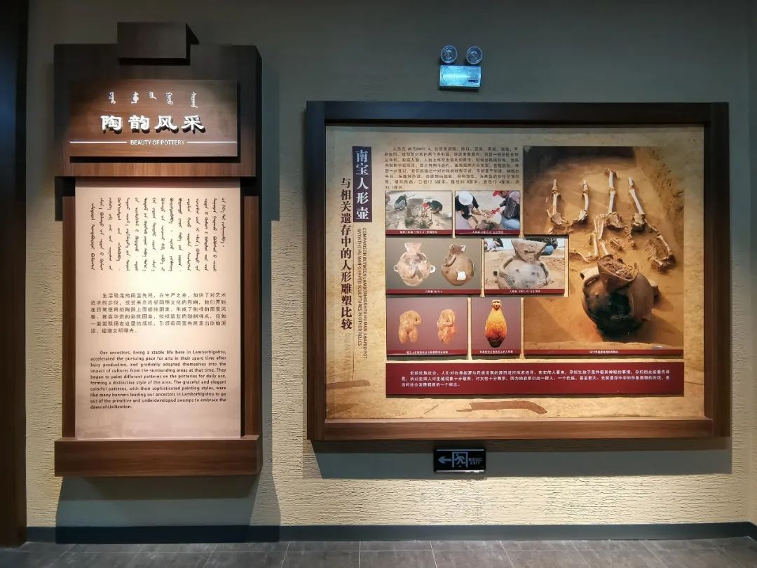 陶韻風(fēng)采;生活穩(wěn)定的南寶先民,在生產(chǎn)之余,加快了對藝術(shù)追求的步伐,接受來自周鄰?fù)谖幕挠绊?,他們開始在日常使用的陶器上面描繪圖案,形成了獨特的南寶風(fēng)格。雍容華貴的彩陶圖案,紋樣繁復(fù)的劃刻特點,宛如一面面飄揚在這里的旗幟,引領(lǐng)著南寶先民走出原始泥沼,迎接文明曙光。