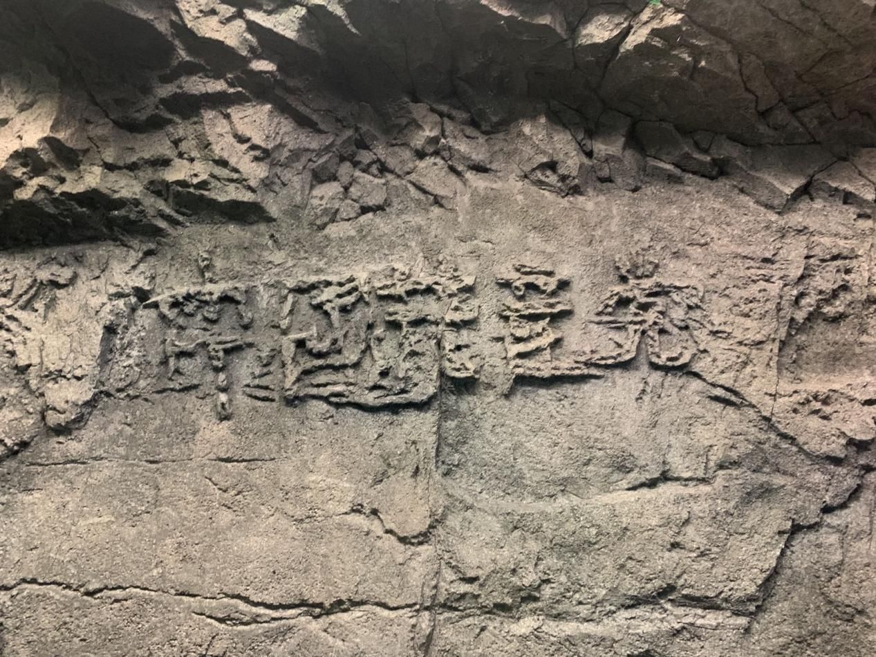 藏字石(場景復原):位于貴州平塘國家地質公園,山頂墜落的一塊巨石斷面上,凸顯出一排很像“中國共產黨”這五個漢字的圖案,這是古生物化石經過溶蝕及差異風化作用而形成