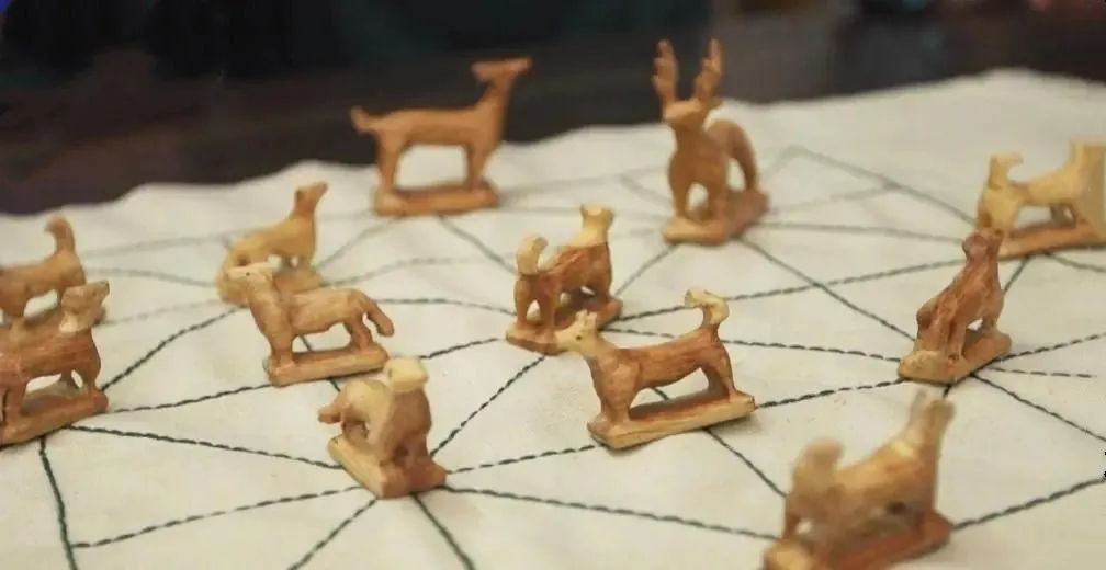 蒙古鹿棋,是蒙古族民間典型的棋藝之一。棋子模擬狗和鹿的角逐過程,這與蒙古族人民的生活習俗密切相關,可以說是當時蒙古族人民勞作之余重要的娛樂活動。