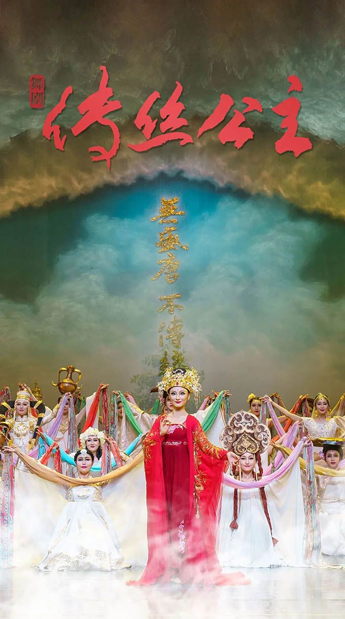 《傳絲公主》以唐朝玄奘《大唐西域記》中“瞿薩旦那國(guó)”(今新疆和田地區(qū))一條關(guān)于蠶種西傳的史料記載為依據(jù),以新疆丹丹烏里克遺址發(fā)掘的唐代木板畫“傳絲公主”的文物遺存為印證,以于闐王子與唐朝公主將東方蠶桑絲綢首傳西域的故事為載體,再現(xiàn)了1300年前我國(guó)各民族文化上兼收并蓄,經(jīng)濟(jì)上相互依存,情感上相互親近,在互鑒融通中匯聚成多元一體的中華民族的歷史。