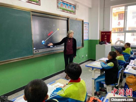 圖為天津市河西區(qū)平山道小學(xué)老師唐華,在莊浪縣第一小學(xué)支教,給學(xué)生上地理課。 (資料圖) 李順民 攝