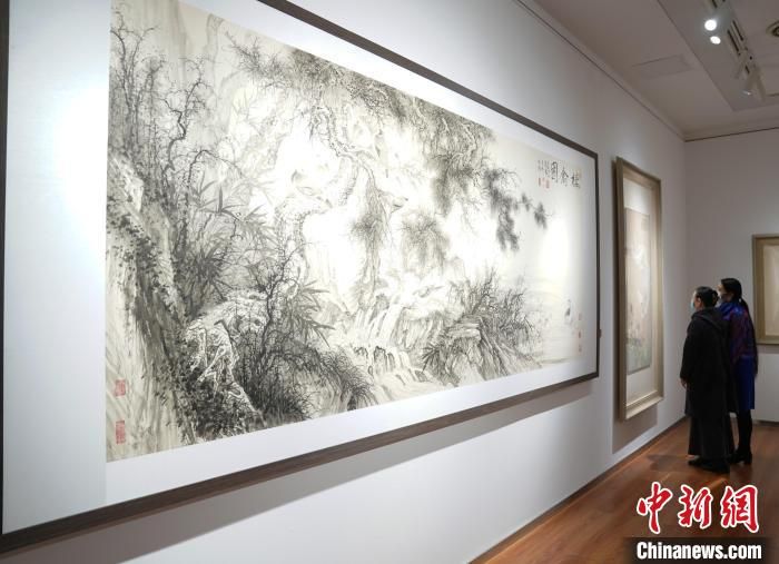 在展覽上,為慶祝中國(guó)藝術(shù)研究院建院70周年,田黎明和許俊,牛克誠(chéng)、周石峰、任清和曾三凱,劉萬(wàn)鳴和劉彥水,趙建成、崔進(jìn)和劉少寧分別合作的《新綠》《千巖霞映》《棲禽圖》《我見(jiàn)青山多嫵媚》4幅丈二尺幅的中國(guó)畫(huà)同時(shí)亮相。
