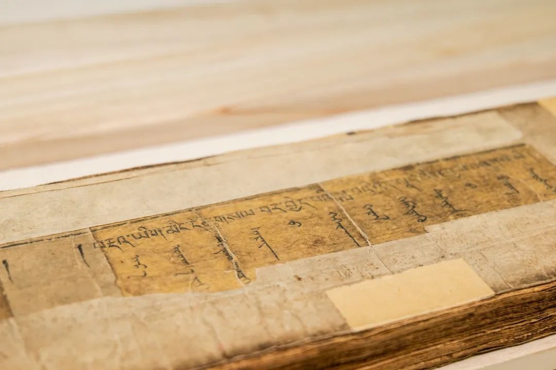 藏蒙對照詞典《詳解月光辭典》又稱《浩月輝映詞典》,該詞典由阿拉善拉隆巴阿旺丹德爾編著,清道光十八年(1838)北京嵩祝寺木刻本。1卷,139葉,頁面尺寸10.6×56厘米,版框尺寸7.5×49厘米,四周雙欄,梵來裝。每頁以藏蒙、藏蒙四行為階梯排列,每列35行,每行1字。頁面左側有藏文頁碼,右側有漢字《永》和漢文頁碼。