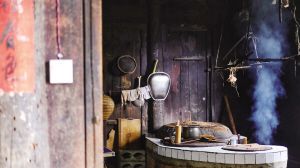 鏡頭的取景框內(nèi),青菜在“古井”潺潺流水中淌去泥沙,沿著苔蘚步道,裝在背簍里被送入小院;陽光透過窗欞灑下,熏黑的灶臺(tái),柴火劈啪作響,趁著火候,幾下翻炒,白霧便混合著農(nóng)家飯香騰騰升起。