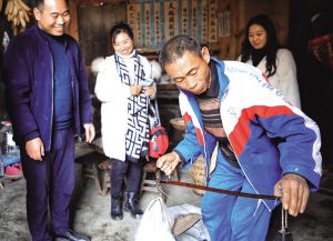 在村里修復(fù)舊屋的趙貢彩接到游客電話,馬不停蹄地趕回家中,自家手工制作的苕粉成了游客心心念念的香餑餑。拿出早已生銹的秤桿,一袋袋苕粉被游客搶著購買?!岸际橇糁约页缘?,哪想著能賣出去喲。”笑著說罷,趙貢彩拿出手機(jī),微信一掃,錢款立即到賬。