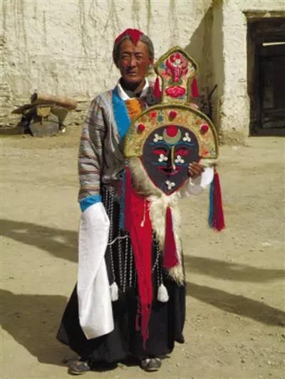 迥巴藏戲有一種古老的練聲方法,就是嘴對墻壁,僅隔伸展開的大拇指與小拇指之間的距離,拉長音練“啊”字;而且還要到大河邊練嗓音壓過奔騰咆哮的浪濤聲。迥巴藍(lán)面具藏戲唱腔之所以能長久保持嘹亮恢宏、腦后音與胸腔共鳴有很強(qiáng)的特點,是和這種練聲方法分不開的。它在參加拉薩雪頓節(jié)演出以后,又吸收了其他藏戲唱腔的長處和姊妹藝術(shù)的音樂特點,使唱腔更加豐富多變。迥巴戲班在開場和正戲中還穿插表演“波娃多嚇”“常斯興孜”等古老藏族雜技。還在演出中穿插揉入了“堆諧”(靠近阿里的拉孜、昂仁、定日一帶)地區(qū)的六弦彈唱、堆諧歌舞和酒歌等。它的演出地方特色鮮明、表演技巧高超。如六弦彈唱,形似敦煌壁畫上的伎樂飛天一樣,把扎念琴舉到頭頂,背后、反身、側(cè)身,都能彈跳自如。迥巴藍(lán)面具藏戲中的這些“堆諧”歌舞隨著戲班參加拉薩雪頓節(jié)演出而深受拉薩各界人士歡迎,并隨著民間交往和藝人傳播,逐步流傳開來。后來又經(jīng)過加工和規(guī)范,成為城市化的藏族踢踏舞。