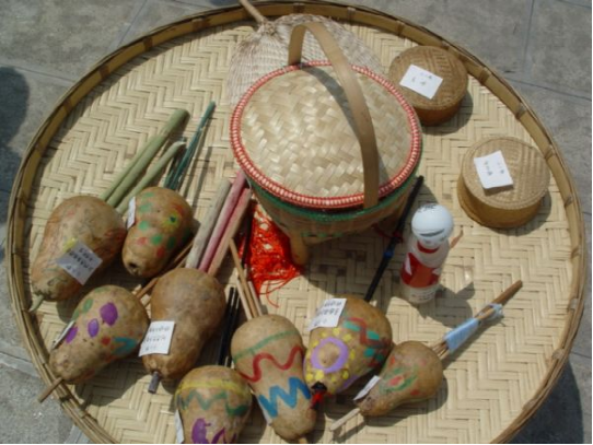 2010年上海世博會活動周期間,一臺名為《記憶云南》的18項非物質(zhì)文化遺產(chǎn)展示成為最吸引眼球的亮點之一。活動現(xiàn)場,18名云南非物質(zhì)文化遺產(chǎn)傳承人和民間藝人展示白族布扎、納西族東巴畫、傣族剪紙、傣族竹編、佤族織錦技藝等制作技藝。其間展示的傣族竹編技藝在民族文化風(fēng)情濃郁,文化底蘊深厚的耿馬傣族佤族自治縣廣為流傳。俗話說傣族“無竹不成家”,自古以來,傣族就和竹子結(jié)下了不解之緣。傣家人生活地區(qū)大多竹資源豐富,他們在飲食上喜歡吃鮮竹筍和用竹筍腌制的酸筍,各種生活用具也多用竹制作而成。在翠竹掩映,綠色蔥籠的耿馬傣族村寨,傣家人尤其愛竹、用竹,并擅長竹編技藝,他們擅用竹子為材料搭橋、蓋屋,住的是竹樓,用的是各式自編的竹器,大至籬、墻、門、毯笆、竹筏、床、桌、柜、席,小至飯盒、帽、扁擔(dān)、簍、提籮、甑子、供桌、鼓凳等,無一不是用竹編織而成。有的竹編還鑲嵌五彩圖案,富麗堂皇,專供佛寺祭掃之用,而各種精美的竹編小物品則是男女青年表達(dá)愛情的信物。傣族竹編歷史悠久,世代相傳的竹編技藝,具有鮮明的民族特色。耿馬傣族竹編工藝精細(xì),造型樸實大方,圖案變化美觀,制品種類繁多,是優(yōu)良的實用工藝,其中以笆蘿、飯盒、檳榔盒、提籮、供桌的竹器編織技術(shù)最有代表性。笆蘿是傣語,指的是一種掛在腰間的竹簍。笆蘿編織精巧,美觀適用,既是生產(chǎn)、生活用具,又是精致的裝飾品。傣族婦女身著輕盈飄逸民族服裝,腰系一只笆蘿,走動時笆蘿隨身輕松搖擺,顯得十分樸實、精干、健美、俊俏。更為珍愛之處在于,笆蘿是傣族青年男女間愛情的傳遞物。傣族男子從小學(xué)習(xí)竹編,人人都有一手精湛的竹編技藝,青年男子總是精心編織一只笆蘿送給自己心愛的姑娘,換回一個姑娘回贈的親手織繡的筒帕。所以編織笆蘿和織繡筒帕是傣族青年“編織愛情的技藝”。如果一個小伙子不會竹編,那么他就同姑娘不會織繡一樣,說明他沒有一雙勤勞靈巧的雙手,很難找到心愛的伴侶。耿馬傣族民間竹編漆器工藝歷史悠久,世代傳承其竹編漆器主要有貢桌和提籮,傣語稱“浪擺”和“撒毫”。 “撒毫”和“浪擺”是傣族群眾從事佛教活動時的必需用品,家家戶戶都備有一套。每到潑水節(jié)或開門節(jié)、關(guān)門節(jié)時,傣家老人用“撒毫”裝各種禮佛用品,子女們則用“浪擺”和“撒毫”給父母送齋飯。平時則置于高處,不能亂放東西。僅“撒毫”的制作流程,便可分為選竹、破篾、編制、裝飾等10道工序,裝飾工藝獨特精美,集實用性和觀賞性于一體。由于傣族人民篤信佛教,竹器漆制品較多裝飾荷花、魚、蝴蝶等圖案,寓意祈求佛祖保佑,賜福予人風(fēng)調(diào)雨順、吉慶有余。傣家竹編,既為人們生產(chǎn)生活所必需,也給人美的享受,真是民族工藝百花園的一朵奇葩。