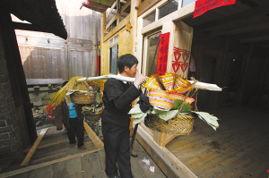 新娘離開娘家時,女方不僅要送單數(shù)的雞、鴨,如5、7、9只,就連給男方所挑的陪嫁品擔子也必須是單數(shù)的。