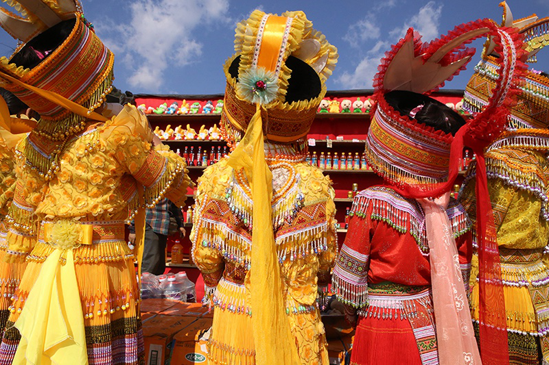 經(jīng)過層層選拔出的100名繡娘在此飛針走線,同秀技藝,展現(xiàn)了少數(shù)民族民間文化獨(dú)特的藝術(shù)魅力。