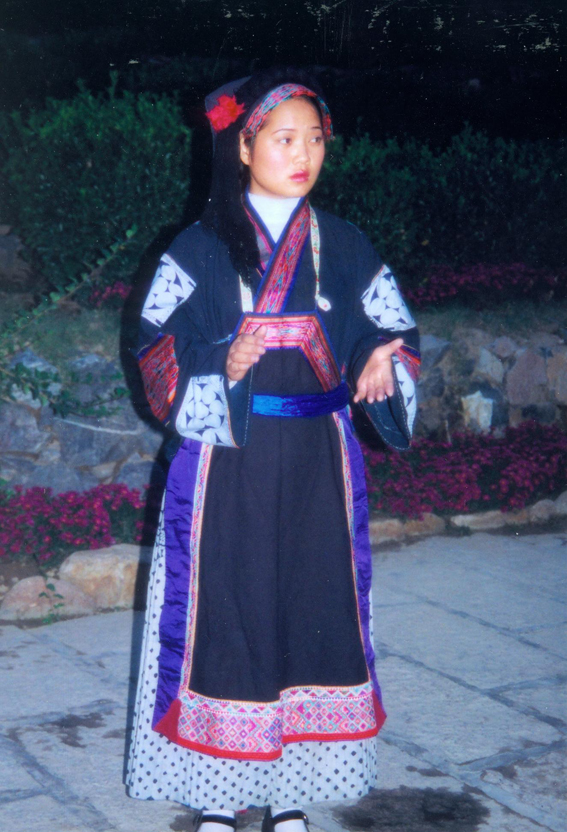 西南地區(qū)的服飾分布地區(qū)包括貴州省黔南布依族苗族自治州羅甸,黔西南州望謨、冊亨、貞豐、安龍、興義、興仁、安順市的鎮(zhèn)寧、關嶺、紫云三縣的南部以及云南省羅平等縣(市),基本上都屬于布依語第一土語區(qū)。這個地區(qū)婦女普遍穿大襟衣、長褲腳。衣服的盤肩、袖口、襟沿鑲有蘭干。褲腳為大褶邊,或藍色褲腳鑲一截青布和蘭干。衣服的長短和褲腳的大小,各地區(qū)都不相同。冊亨一帶衣服較短,褲腳短小,包花格長帕,胸頸掛彩珠項圈,手套玉石或骨制手鐲;望謨一帶青年婦女把花格帕折疊后纏戴;貞豐一帶的衣服較長,褲腳不折邊,青年和老年婦女基本相同,但青年婦女包的花帕形狀如牛角(人稱“牛角帕”);靠近北部地區(qū),衣褲都較長,而且不鑲蘭干,衣褲和帕子多為青色;安龍、興義一帶則多包白帕,衣褲亦不鑲蘭干;西南一帶地區(qū)衣褲已漸不鑲蘭干,但還穿自織的土布衣服,頭上還包花格帕,一些地區(qū)與漢族婦女裝束完全一樣了。